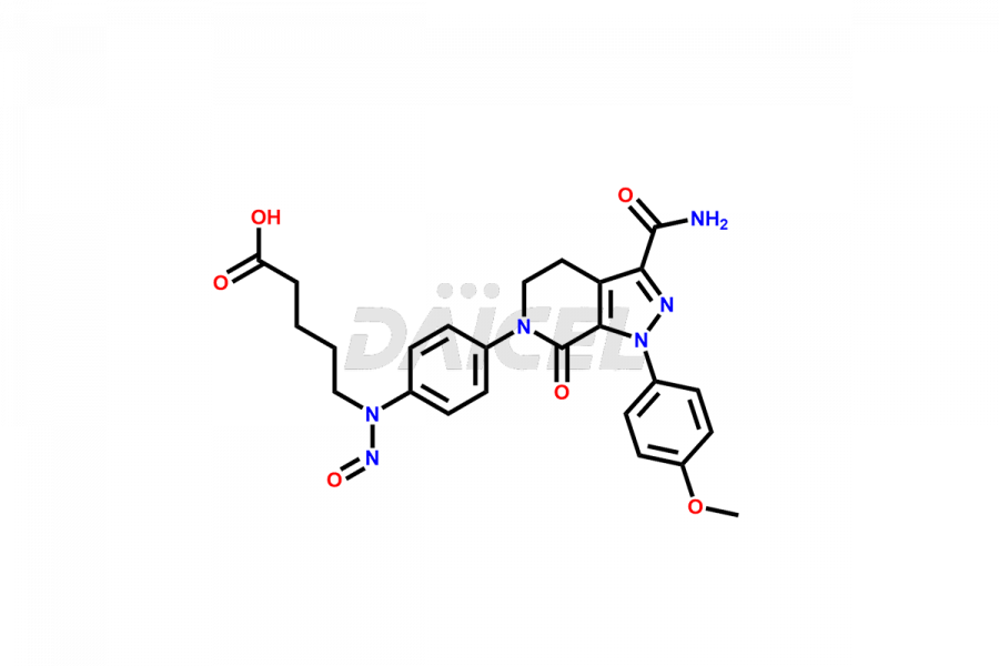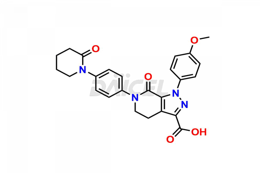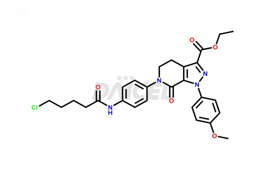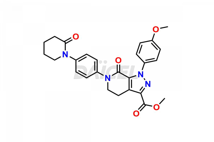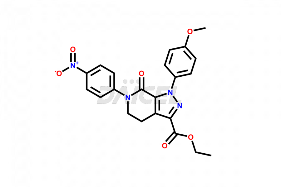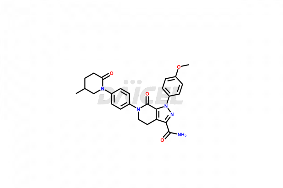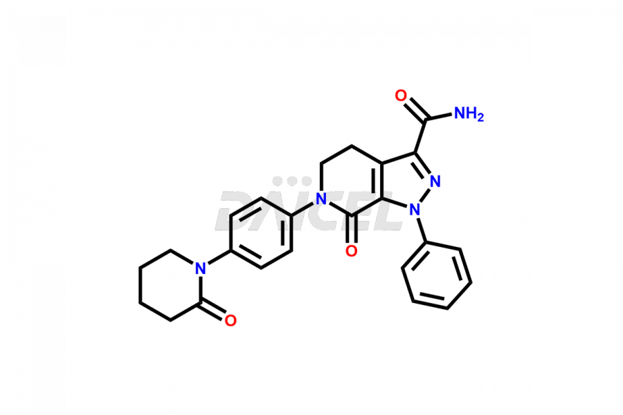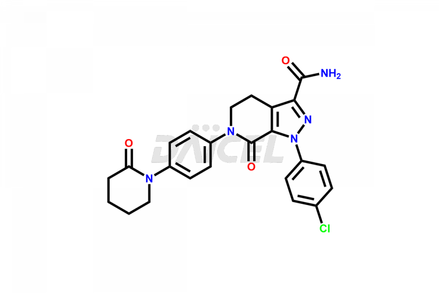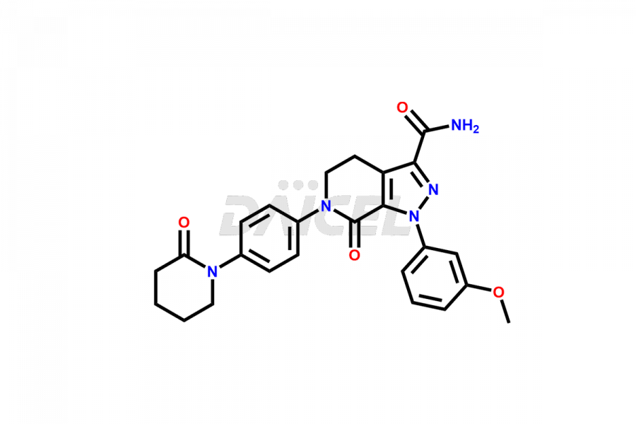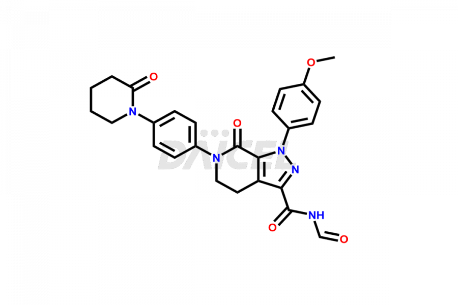 Daicel Pharma synthesizes high-quality Apixaban impurities, including N-Formyl-1-(4-methoxyphenyl)-7-oxo-6-(4-(2-oxopiperidin-1-yl)phenyl)-4,5,6,7-tetrahydro-1H-pyrazolo(3,4-c)pyridine-3-carboxamide, ethyl 6-(4-(5-chloropentanamido)phenyl-1-(4-methoxyphenyl)-7-oxo-4,5,6,7-tetrahydro-1H-pyrazolo(3,4-c)pyridine-3-carboxylate, ethyl 1-(4-methoxyphenyl)-7a-morpholino-6-(4-nitrophenyl)-7-oxo3a,4,5,6,7,7a-hexahydro-1H-pyrazolo(3,4-c)pyridine-3-carboxylate, and so on. These impurities are essential for evaluating the quality, stability, and safety of Apixaban, which is an active pharmaceutical ingredient. Additionally, Daicel Pharma offers a customized synthesis of Apixaban impurities for global delivery to meet the specific needs of our customers.