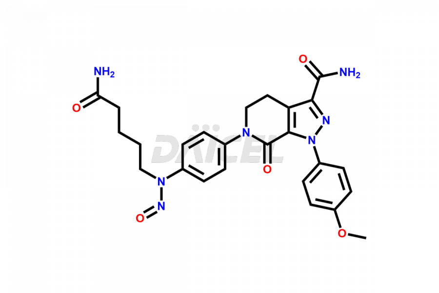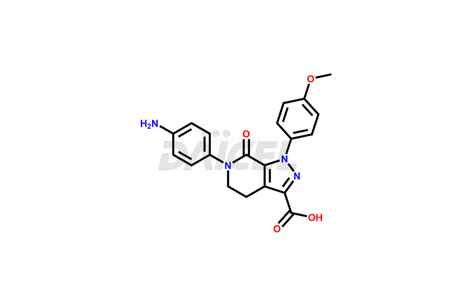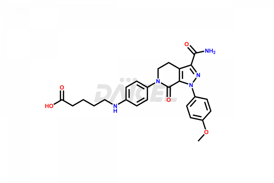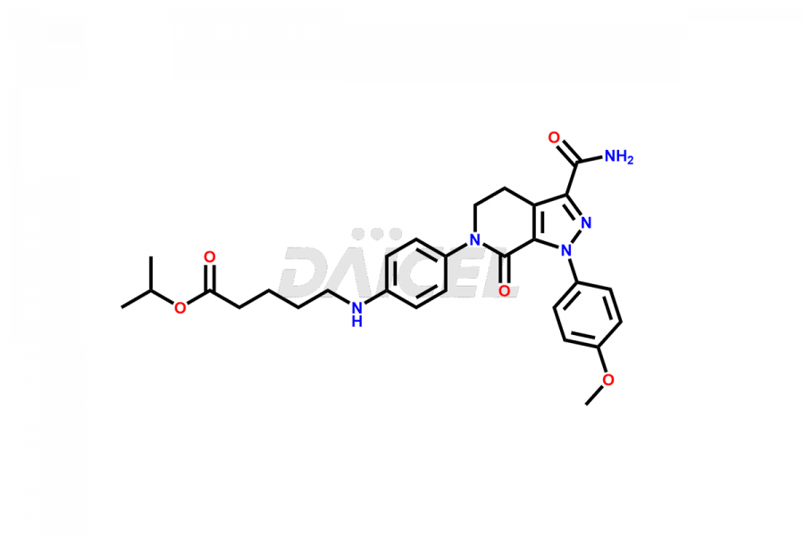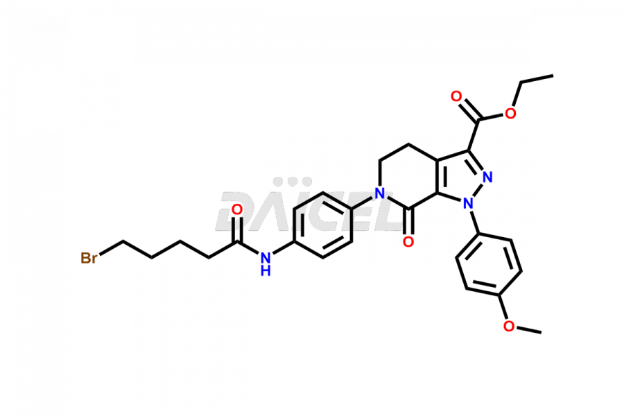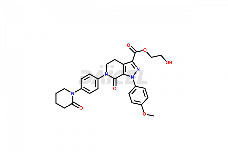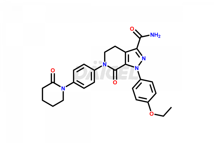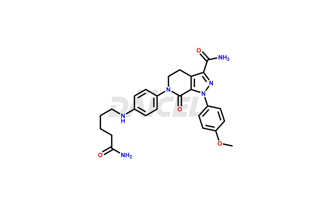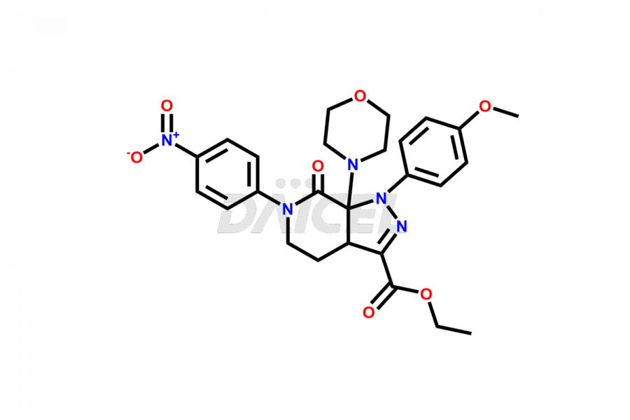 Daicel Pharma synthesizes high-quality Apixaban impurities, including N-Formyl-1-(4-methoxyphenyl)-7-oxo-6-(4-(2-oxopiperidin-1-yl)phenyl)-4,5,6,7-tetrahydro-1H-pyrazolo(3,4-c)pyridine-3-carboxamide, ethyl 6-(4-(5-chloropentanamido)phenyl-1-(4-methoxyphenyl)-7-oxo-4,5,6,7-tetrahydro-1H-pyrazolo(3,4-c)pyridine-3-carboxylate, ethyl 1-(4-methoxyphenyl)-7a-morpholino-6-(4-nitrophenyl)-7-oxo3a,4,5,6,7,7a-hexahydro-1H-pyrazolo(3,4-c)pyridine-3-carboxylate, and so on. These impurities are essential for evaluating the quality, stability, and safety of Apixaban, which is an active pharmaceutical ingredient. Additionally, Daicel Pharma offers a customized synthesis of Apixaban impurities for global delivery to meet the specific needs of our customers.