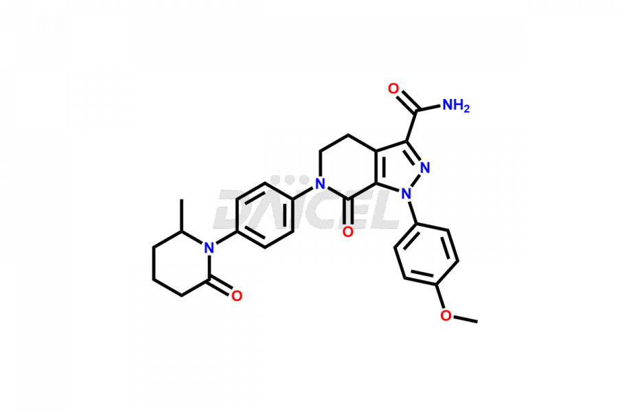 As with any medication, Apixaban may contain impurities that affect its safety and efficacy. Impurities can be generated during the synthesis1 and storage of the drug. Apixaban impurities can include related compounds that may have similar chemical and physical properties as the active pharmaceutical ingredient (API) and degradation products that result from chemical or external changes in the drug over time. Apixaban impurities may also include residual solvents, reagents, or other substances used during the manufacturing process. It is essential to synthesize and analyze Apixaban impurities in the API to ensure the medication is safe and effective for patients.