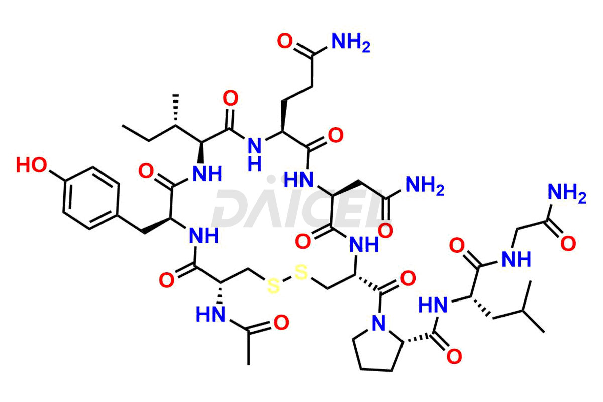 IUPAC Name 2[L-cystyl-L-tyrosyl-L-isoleucyl-L-glutaminyl-L-asparginyl-L-cystyl-L-leucyl-L-prolyl-L-glycinamide] (Inter-disulfide bridges between 1 | 6’ and 1’ 6 cysteines)