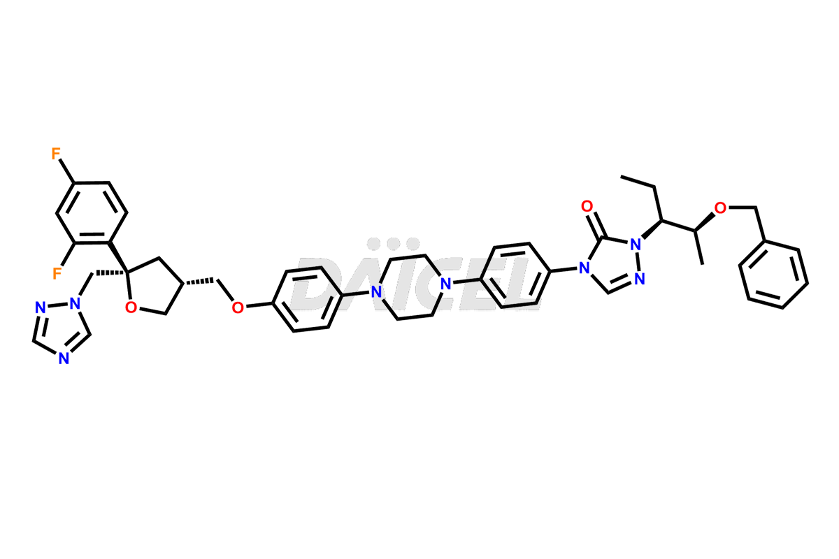 | IUPAC NAME | 4-(4-(4-(4-(((3R,5R)-5-((1H-1,2,4-triazol-1-yl)methyl)-5-(2,4-difluorophenyl)tetrahydrofuran-3-yl)methoxy)phenyl)piperazin-1-yl)phenyl)-2-((2S,3S)-2-(benzyloxy)pentan-3-yl)-2,4-dihydro-3H-1,2,4-triazol-3-one |