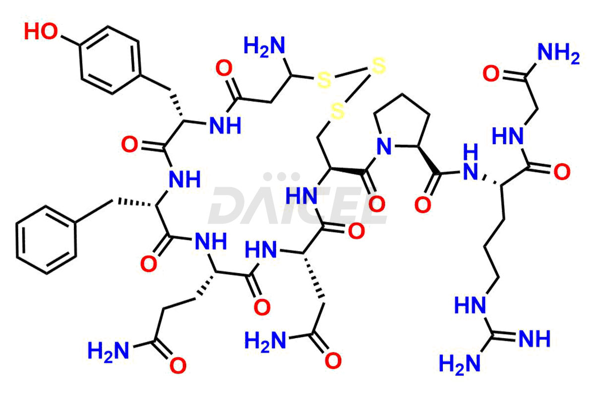 | IUPAC Name | L-cystyl-D-tyrosyl-L-phenylalanyl-L-glutamyl-L-asparginyl-L-cystyl-L-prolyl-L-arginyl-glycinamide (disulfide bridge between Cysteines) |