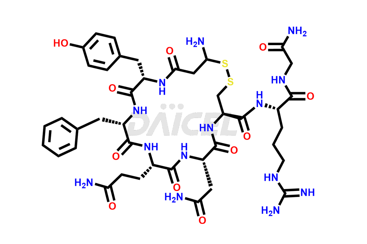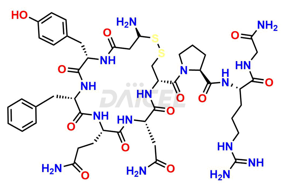 | IUPAC NAME | -Cys-D-Tyr-D-Phe-D-Gln-D-Asn-D-Cys-D-Pro-D-Arg-Gly-NH2 (disulfide bridge between Cysteines) |