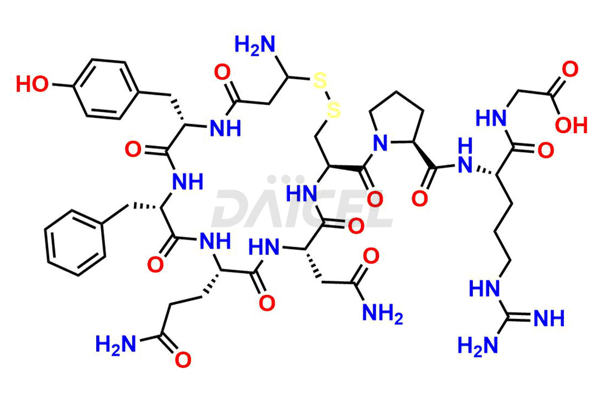 | IUPAC Name | L-cystyl-L-tyrosyl-L-phenylalanyl-L-glutamyl-L-asparginyl-L-cystyl-L-prolyl-L-arginyl-glycyl-glycinamide (disulfide bridge between Cysteines) |
