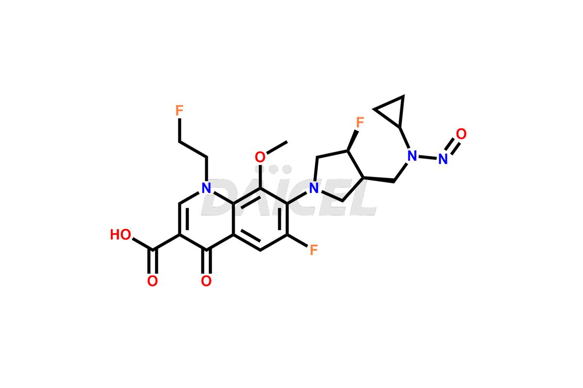 | IUPAC Name | 7-((3R,4S)-3-((cyclopropyl(nitroso)amino)methyl)-4-fluoropyrrolidin-1-yl)-6-fluoro-1-(2-fluoroethyl)-8-methoxy-4-oxo-1,4-dihydroquinoline-3-carboxylic acid |