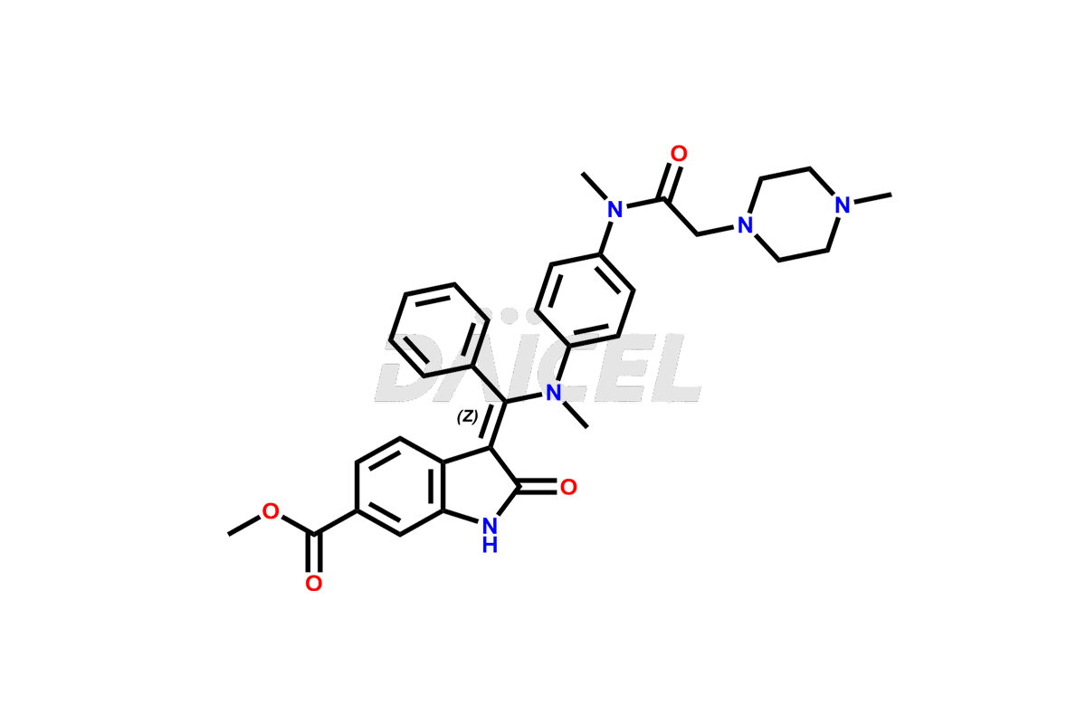 | IUPAC Name | methyl (Z)-3-(((4-(methylamino)phenyl)amino)(phenyl)methylene)-2-oxoindoline-6-carboxylate .TFA salt |