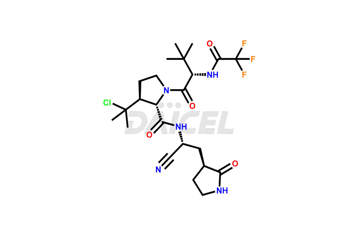 IUPAC NAME (2S,3S)-3-(2-chloropropan-2-yl)-N-((R)-1-cyano-2-((S)-2-oxopyrrolidin-3-yl)ethyl)-1-((S)-3,3-dimethyl-2-(2,2,2-trifluoroacetamido)butanoyl)pyrrolidine-2-carboxamide
